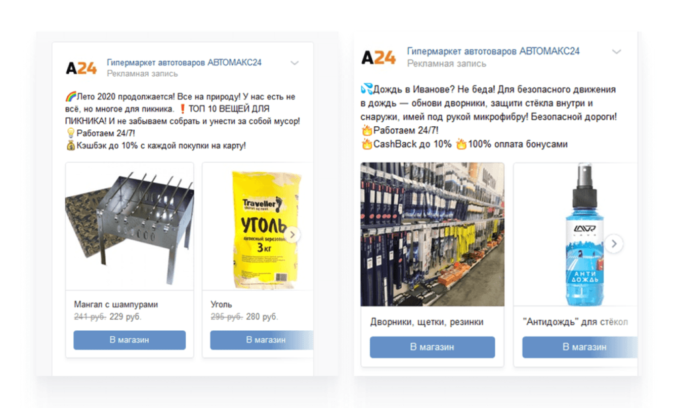 Совместно с клиентом придумывали и разрабатывали офферы по сезону и актуальным потребностям. Например, летом 2020 года в период эпидемии коронавируса и закрытых границ активно рекламировали товары для путешествий на автомобиле, для отдыха на природе.