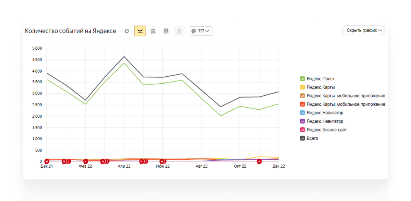 Для автомагазина и тем более для автосервиса размещение на Яндекс.Картах – обязательно! Обеспечило 4500+ значимых событий в месяц, таких как звонок, построение маршрута, переход на сайте и пр.