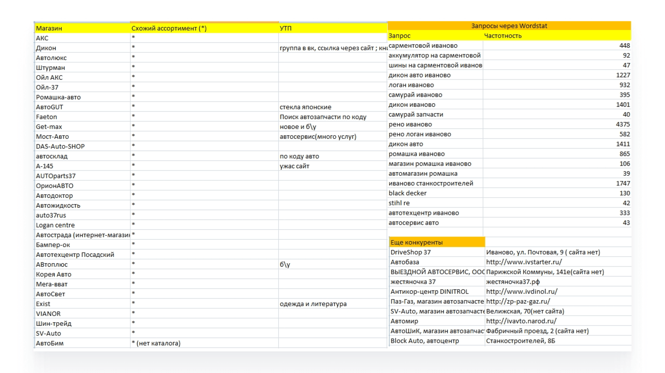 — Собрали семантику по всем категориям товаров на сайте, а также услуг автосервиса. Из более чем 100.000 поисковых запросов получили более 10.000 целевых коммерческих ключевых фраз.