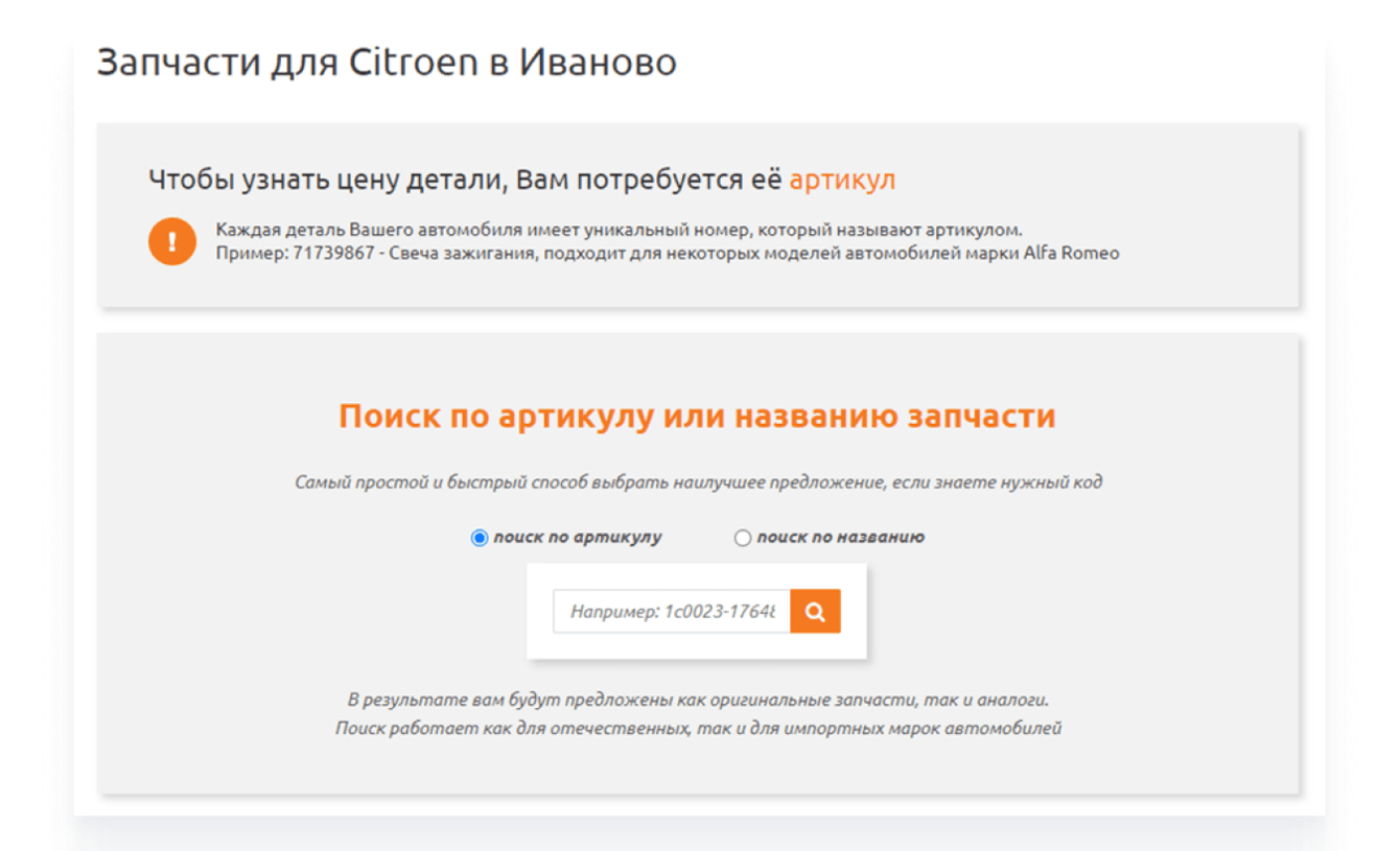 4. Не было функционала поиска товаров, особенно запчастей по артикулу.