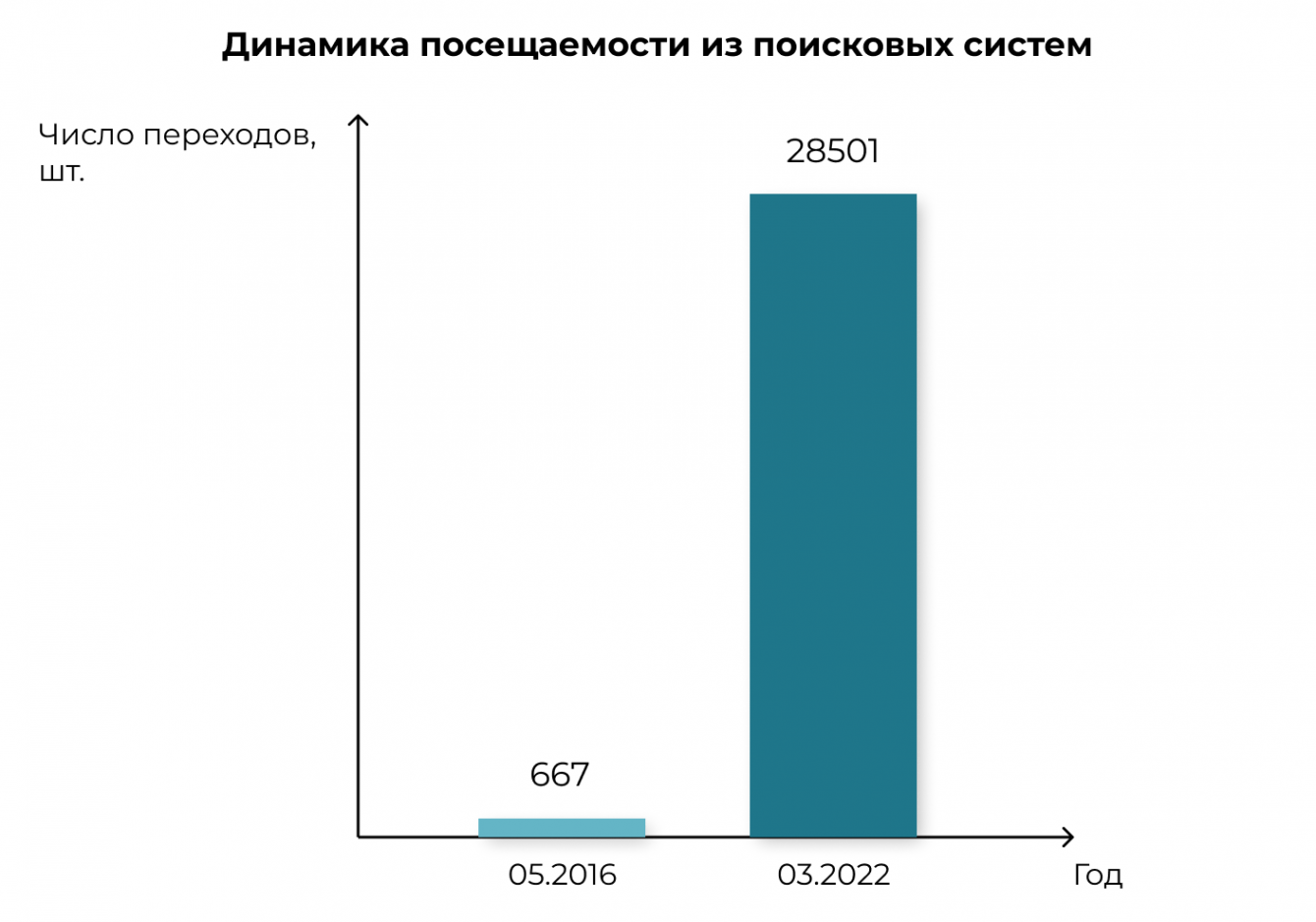 4. Увеличили посещаемость из поисковых систем от 667 до 28.501 в месяц.