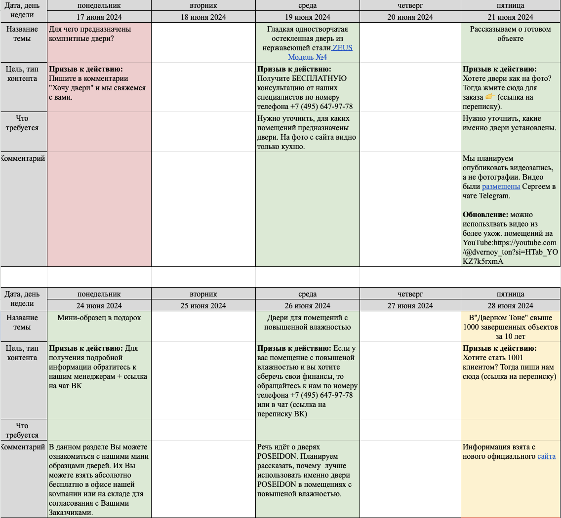 В результате, наш контент стал более структурированным и систематизированным. Продающие посты помогали продемонстрировать преимущества композитных влагостойких дверей и информировать клиентов о акциях и предложениях. Полезные посты содержали советы по выбору и установке дверей, а также информацию о производственных процессах и методах контроля качества.