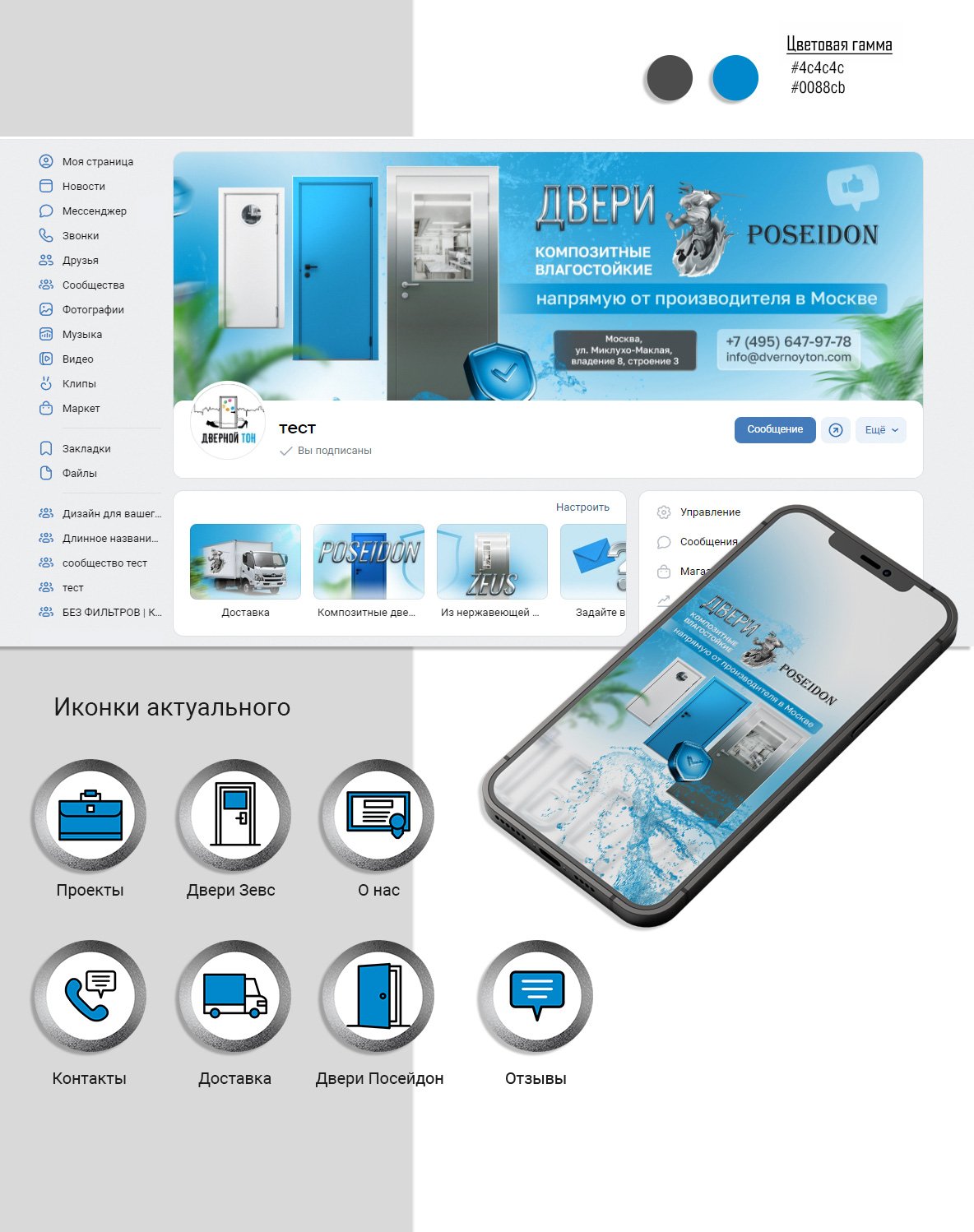В соответствии с пожеланиями и фирстилем фабрики по производству дверей, дизайнер разработал стилистику соц. сетей и создал: