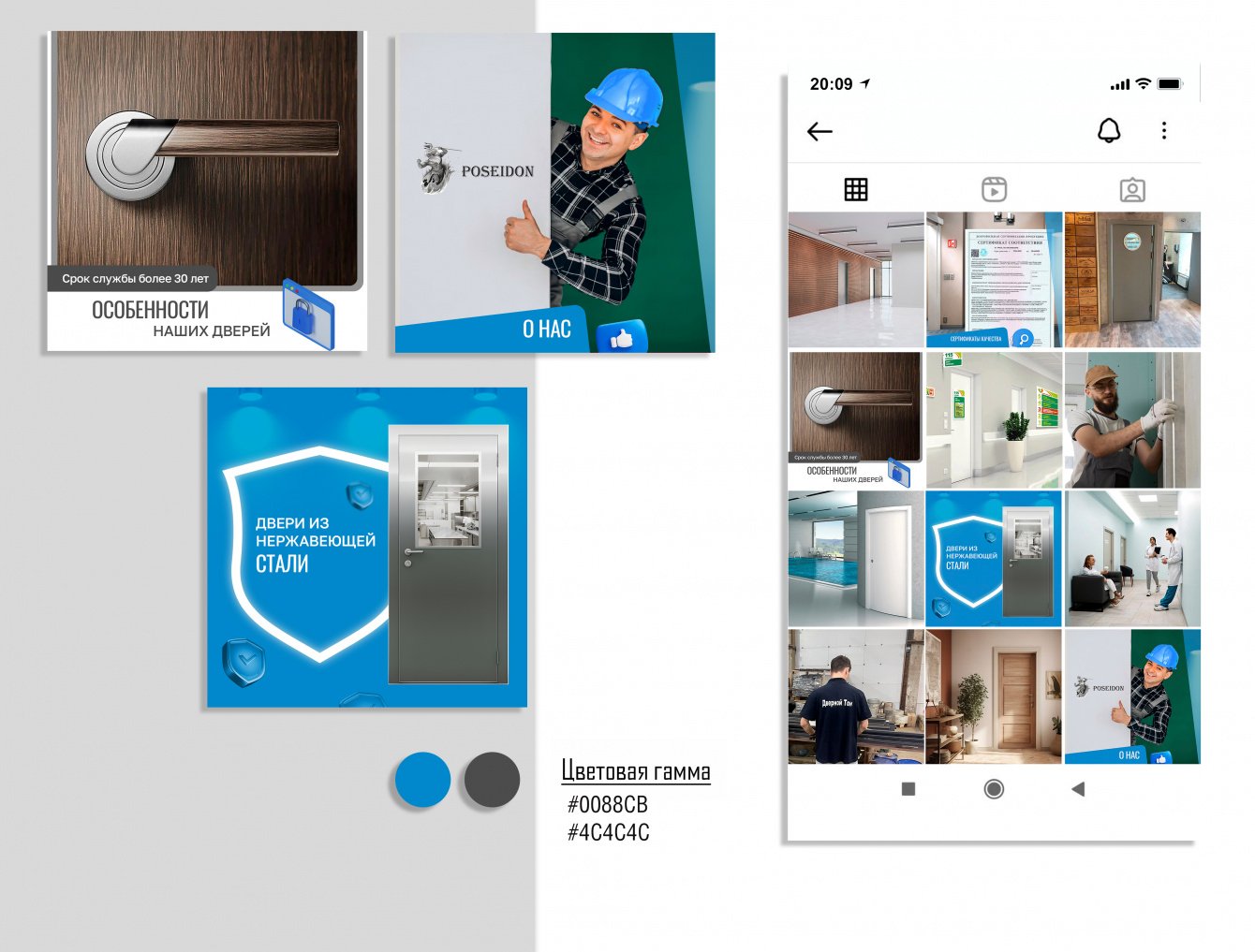 В соответствии с пожеланиями и фирстилем фабрики по производству дверей, дизайнер разработал стилистику соц. сетей и создал:
