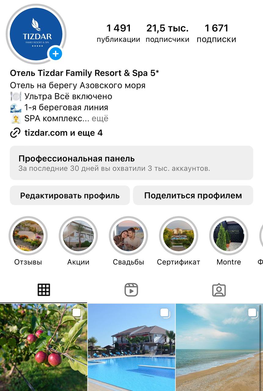 Комплексный подход к продвижению Tizdar Family Resort & Spa 5*, включающий ведение социальных сетей и таргетированную рекламу, а также использование платформ Chat Place и Senler, доказал свою эффективность. Сочетание разных инструментов позволяет нам достичь максимального охвата и вовлеченности целевой аудитории, повысить лояльность клиентов и значительно увеличить количество бронирований. Работа в комплексе показывает, что только через скоординированные усилия можно добиться значительных результатов и укрепить позиции отеля на рынке.