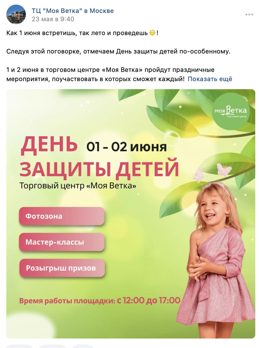 Пример контент-плана для ТЦ «Моя Ветка»:
