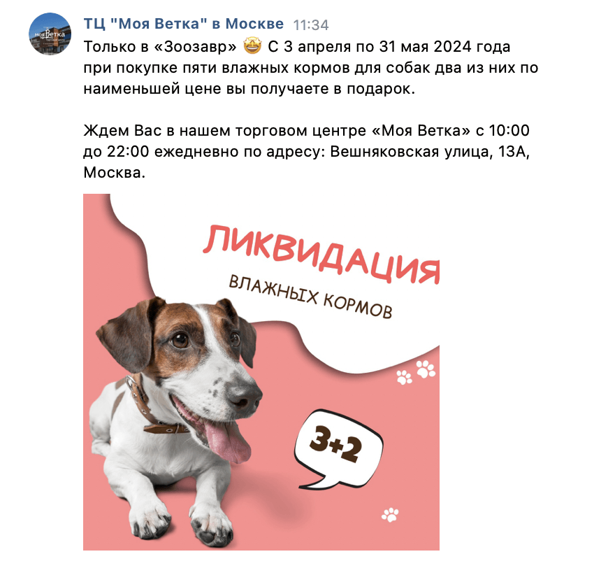 • повысить узнаваемость торгового центра - благодаря активной рекламе и информированию местных жителей, "Моя Ветка" стала более известным и популярным местом для шоппинга и развлечений в районе Вешняки;