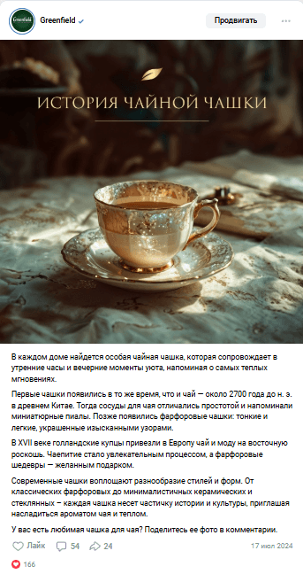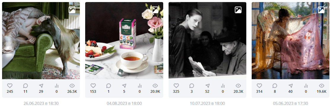 1. Визуальный контент: Упаковка сообщества, публикации с «чайной эстетикой» и призывами обсудить визуал.
