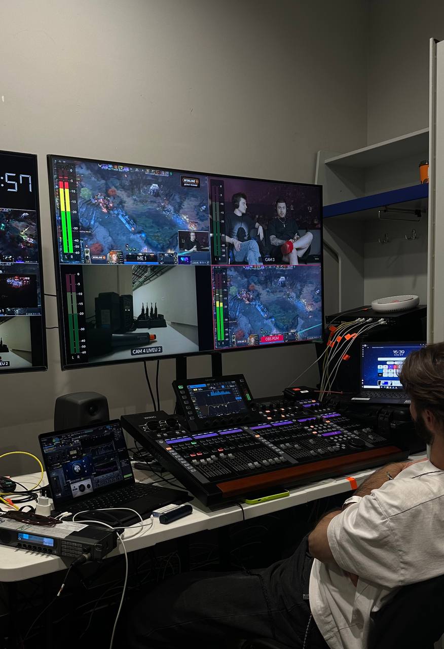 Поскольку комментирование происходило непосредственно со сцены, у команды была двойна задача. Первая — координация прямой трансляции на Twitch-канале стримера Ярослава NS Кузнецова на 50 тыс. человек. Вторая — передача звука и картинки на самом стадионе ВТБ Арены, где 7 тысяч зрителей наблюдали за выступлением в оффлайне. Ярослав NS буквально “гремел” на всю арену и создавал уникальное ощущение в обоих пространствах.