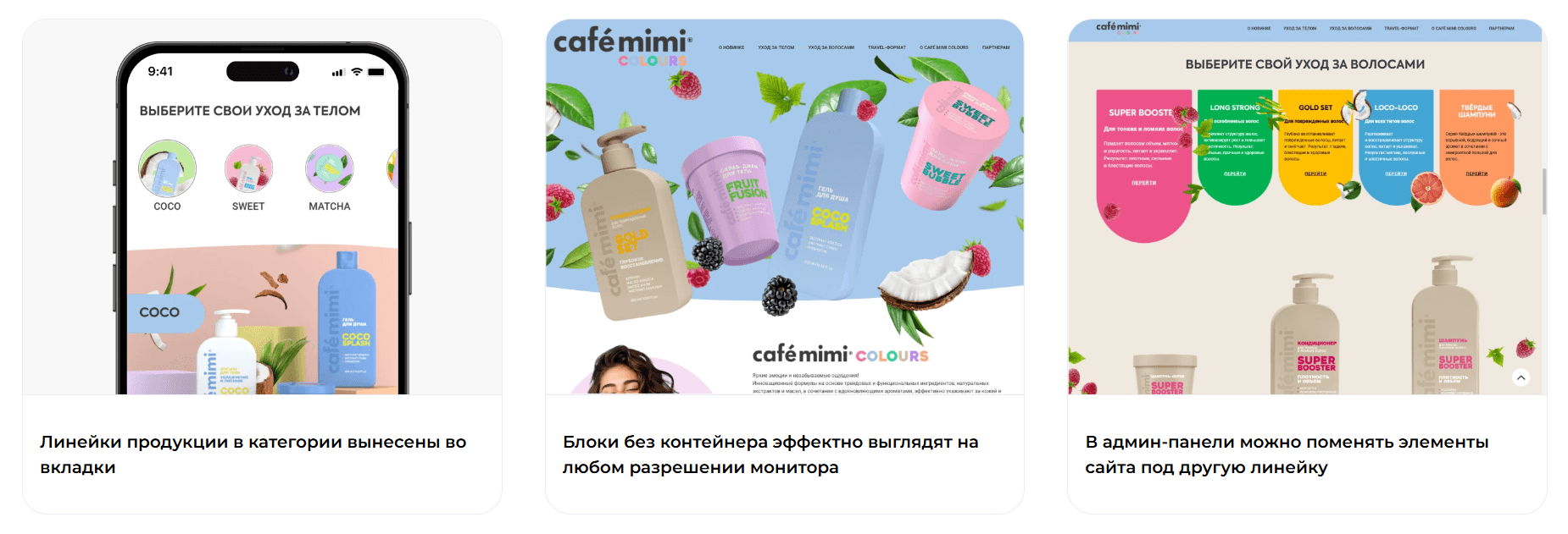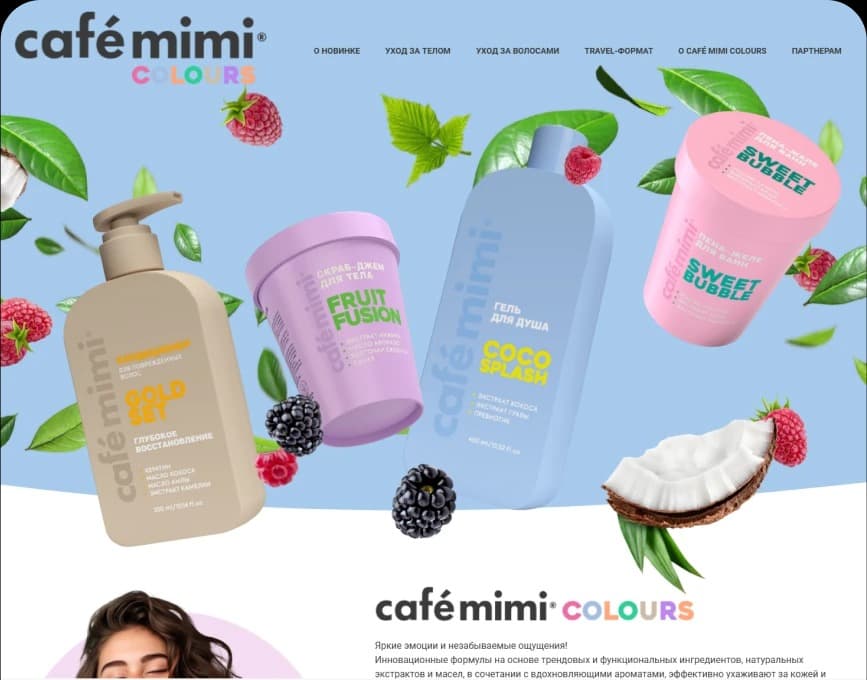 Заказчик — бренд CAFÉ MIMI. Цель проекта — разработка лендинга для новой серии CAFÉ MIMI COLOURS, передающего её ключевую идею: насыщенные эмоции, яркое настроение и запоминающиеся впечатления. Отдельным требованием стала универсальность решения и простота управления контентом, чтобы в будущем сайт можно было легко адаптировать под другие продуктовые линейки.