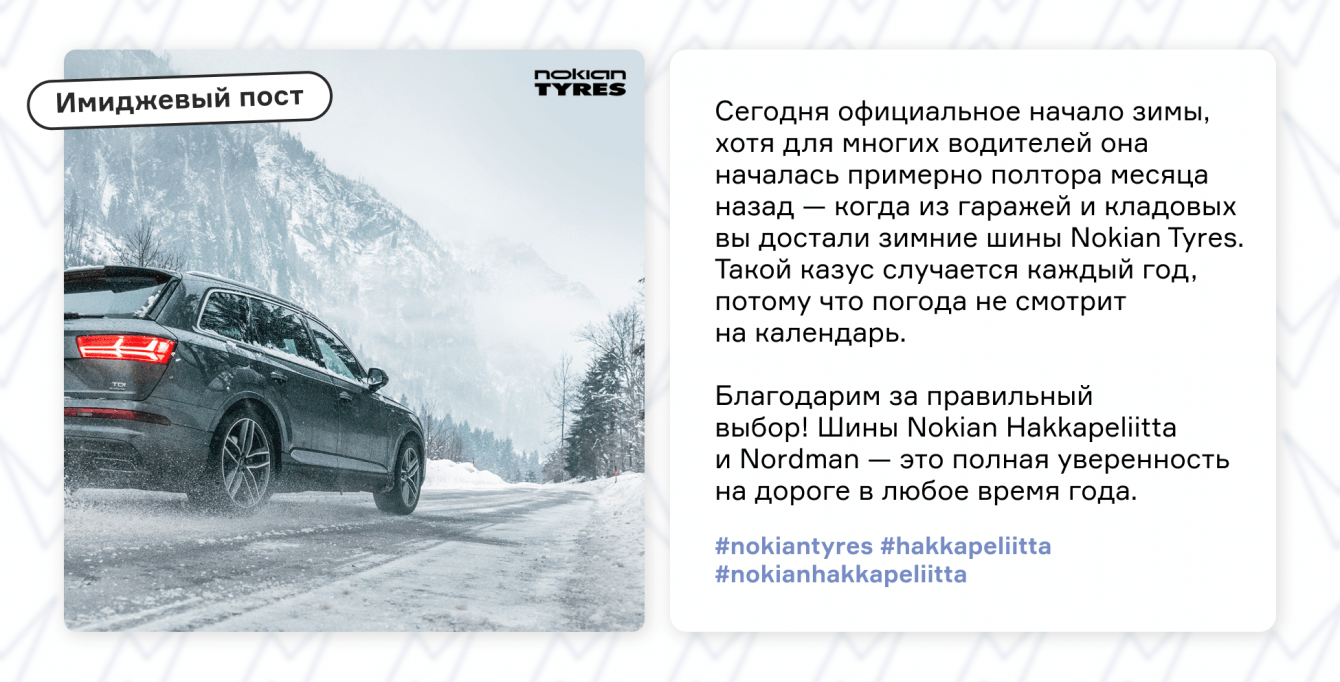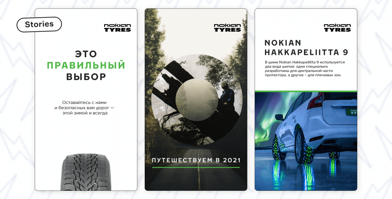 Подготовили логику коммуникации и дизайн-концепцию для соцсетей Nokian Tyres.