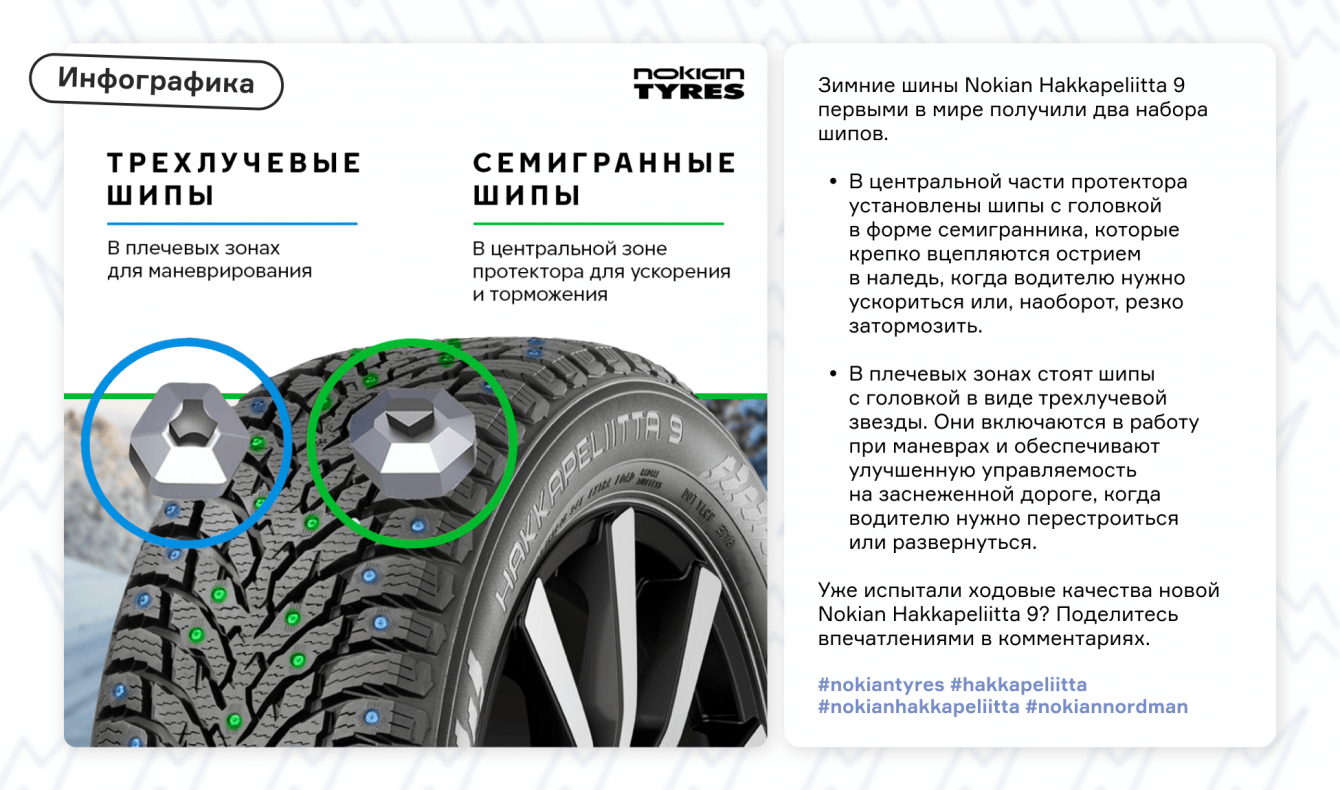Подготовили логику коммуникации и дизайн-концепцию для соцсетей Nokian Tyres.