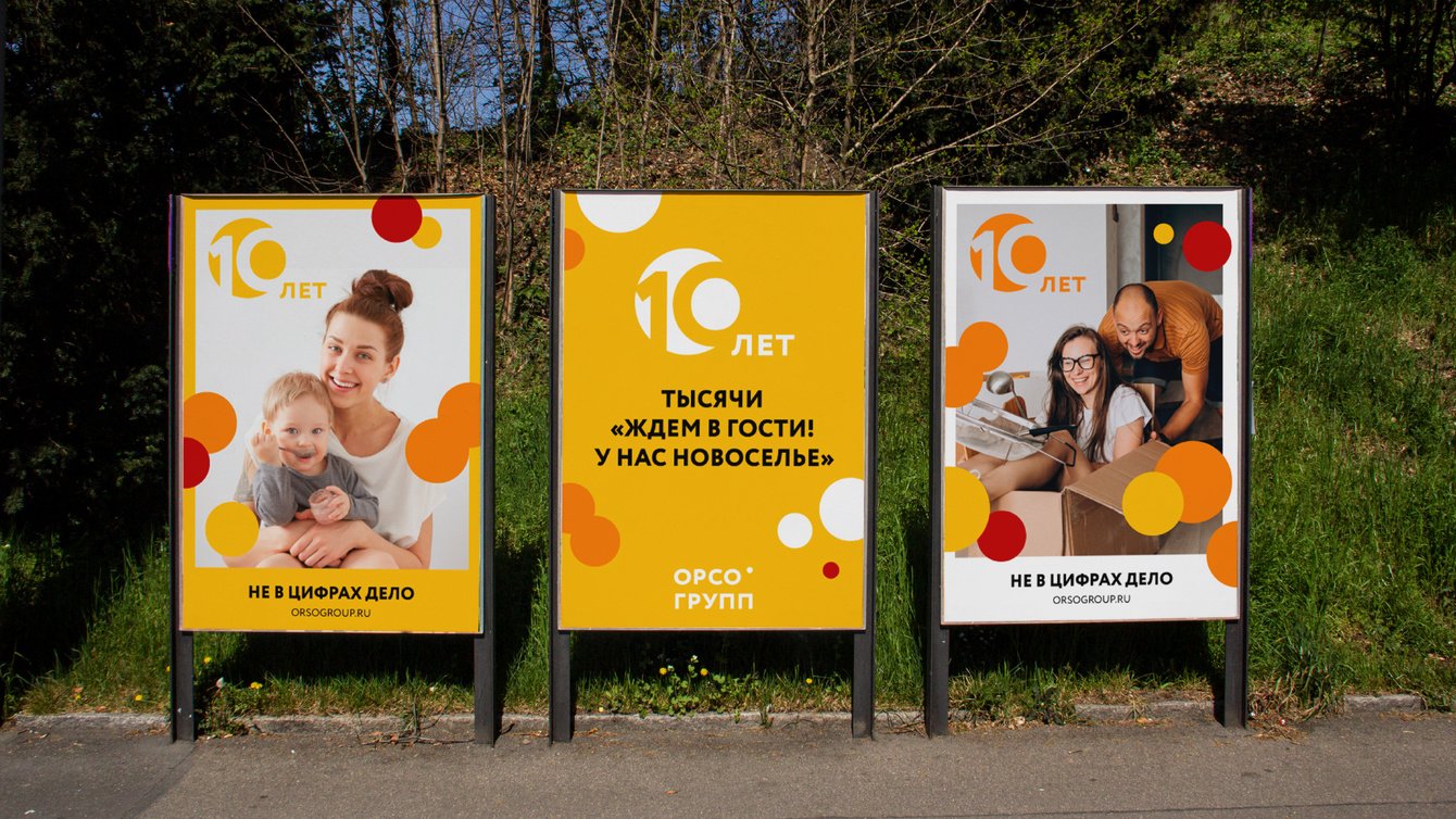 Было важно показать, в чем ценность 10 лет работы «Орсо групп». Разработать креативную идею, визуальную айдентику и перенести ее на носители.