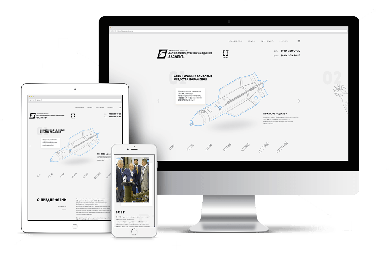 Однако технологии веб-строительства за семь лет, которые прошли с момента запуска первой версии сайта, ушли далеко вперёд. Поэтому для поддержания статуса «НПО «Базальт» как лидера военно-промышленного комплекса страны необходима модернизация сайта компании с учетом современных требований и подходов к дизайну и программированию.