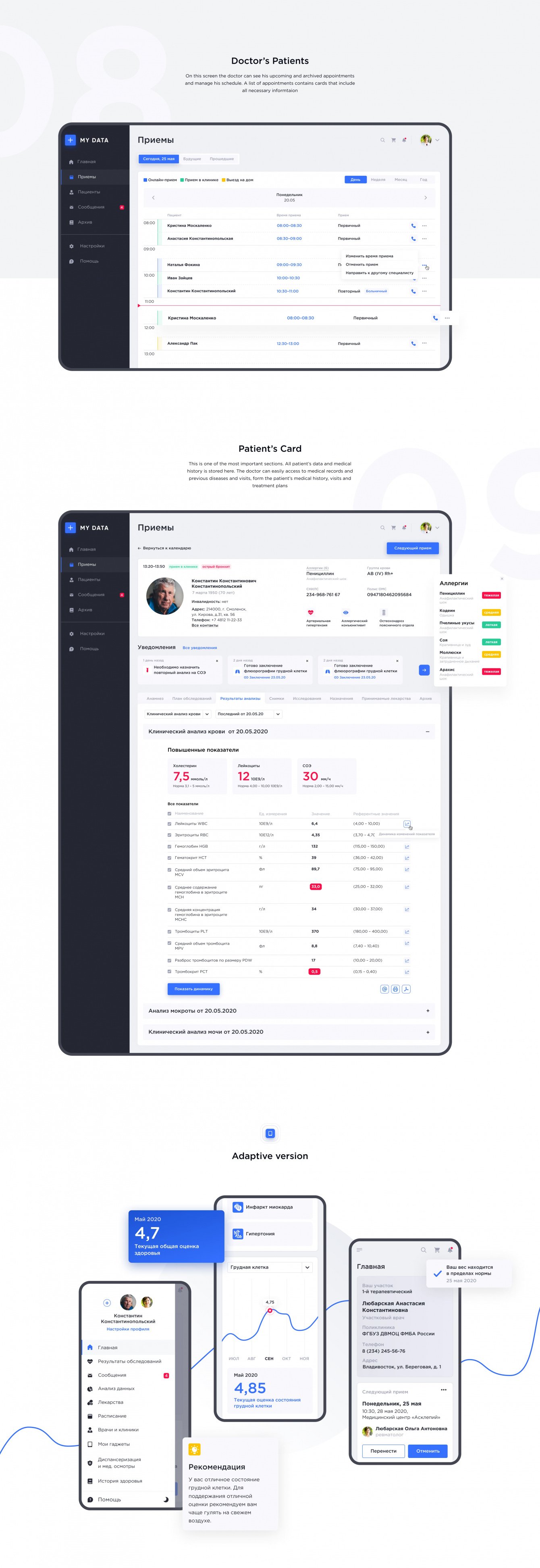 Основной задачей было создать революционно новый интерфейс карты пациента, чтобы он был полезен в современном мире как для пациентов, так и для врачей.