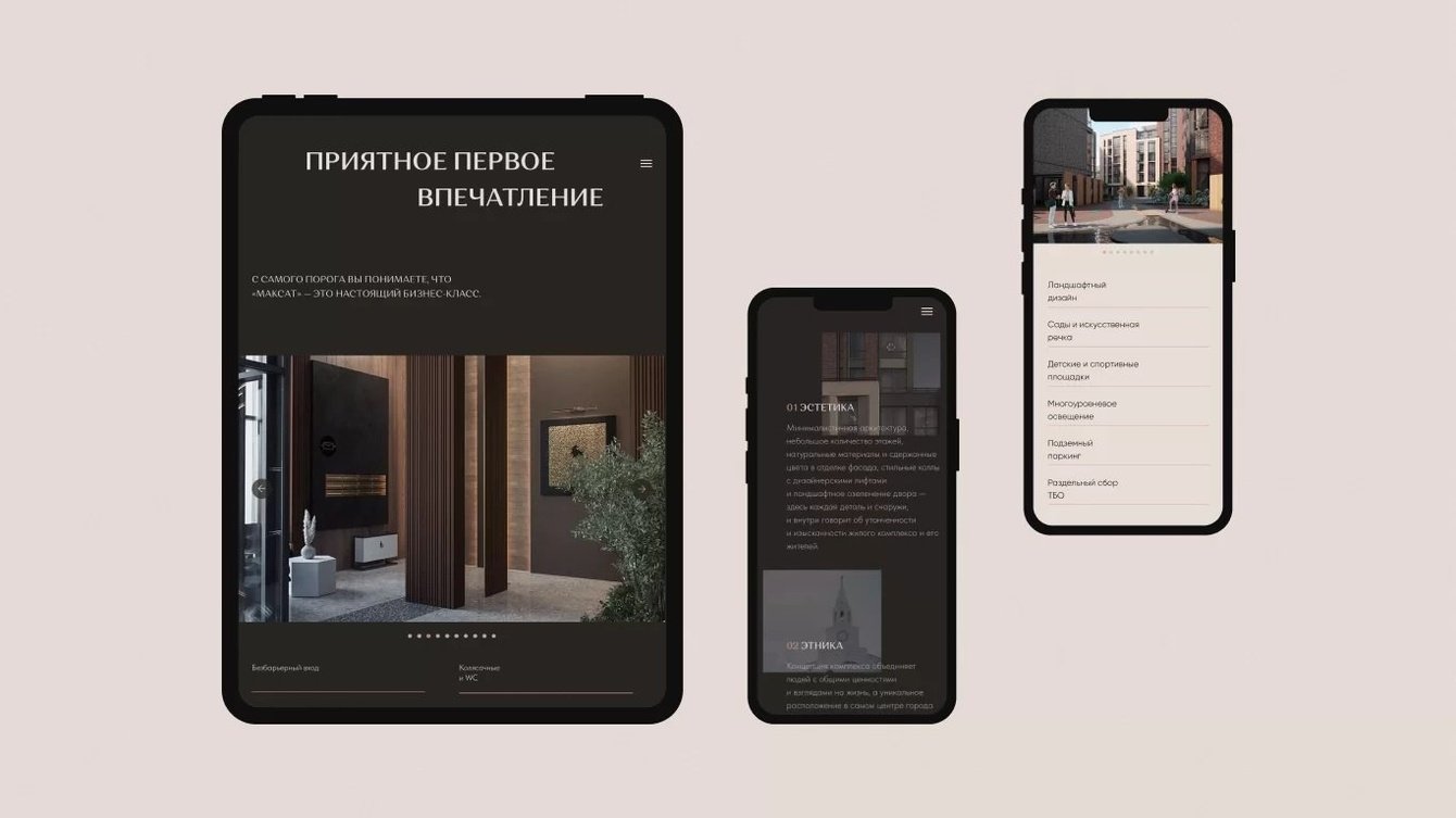 Разработать сайт концепт-комплекса бизнес-класса «Максат» для застройщика NovaStroy