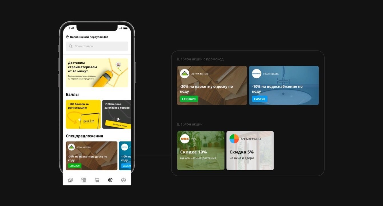 Спроектировали основные экраны мобильного приложения сервиса по доставке стройматериалов BeeClub.
