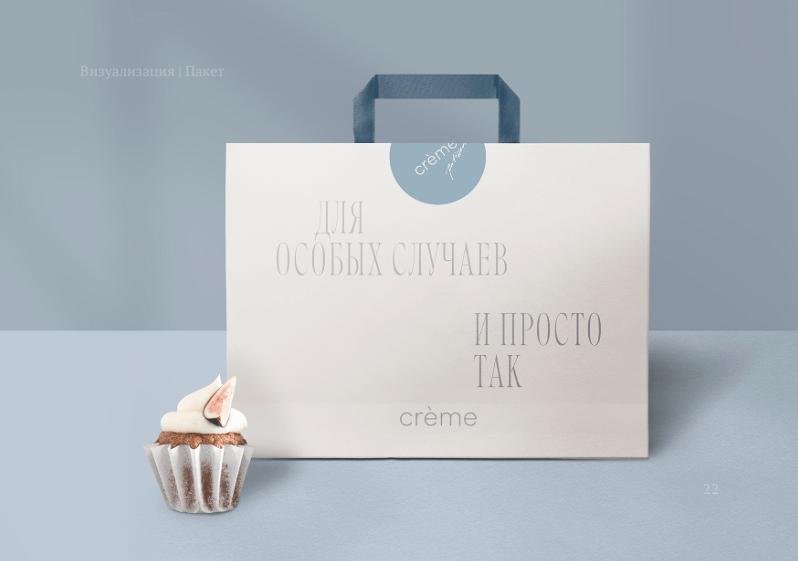 Как родилось название? После перебора различных вариантов, оставили Crème Patisserie. Потому что крем — это связующее звено, большинство десертов без него не такие вкусные. Он нежный, светлый и воздушный, у него интересная текстура. Хотелось передать это ощущение, поэтому и цвета соответствующие.