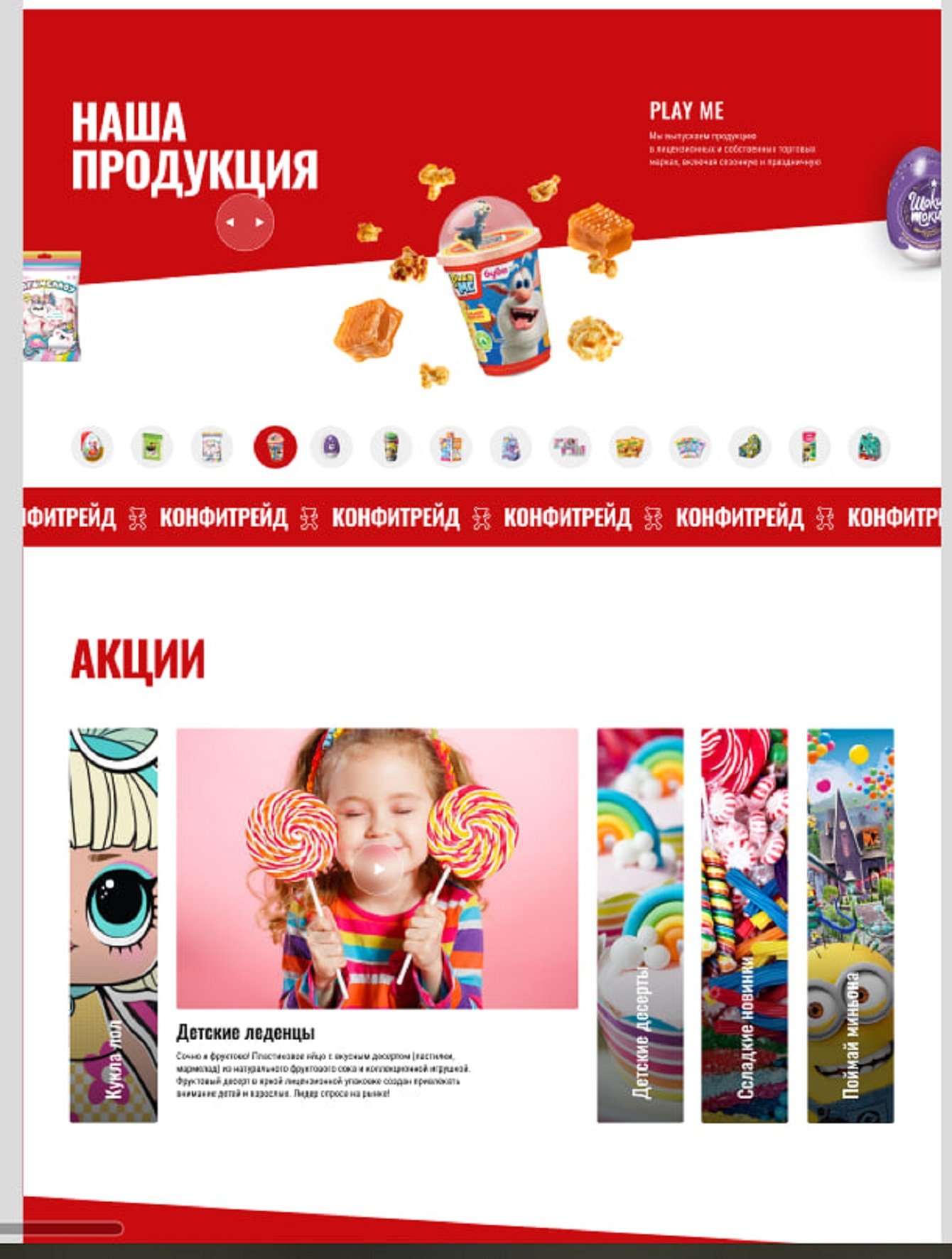 - Разработка раздела "Конфитрейд: Мастер-классы" для предоставления полезных руководств и советов по использованию продукции.
