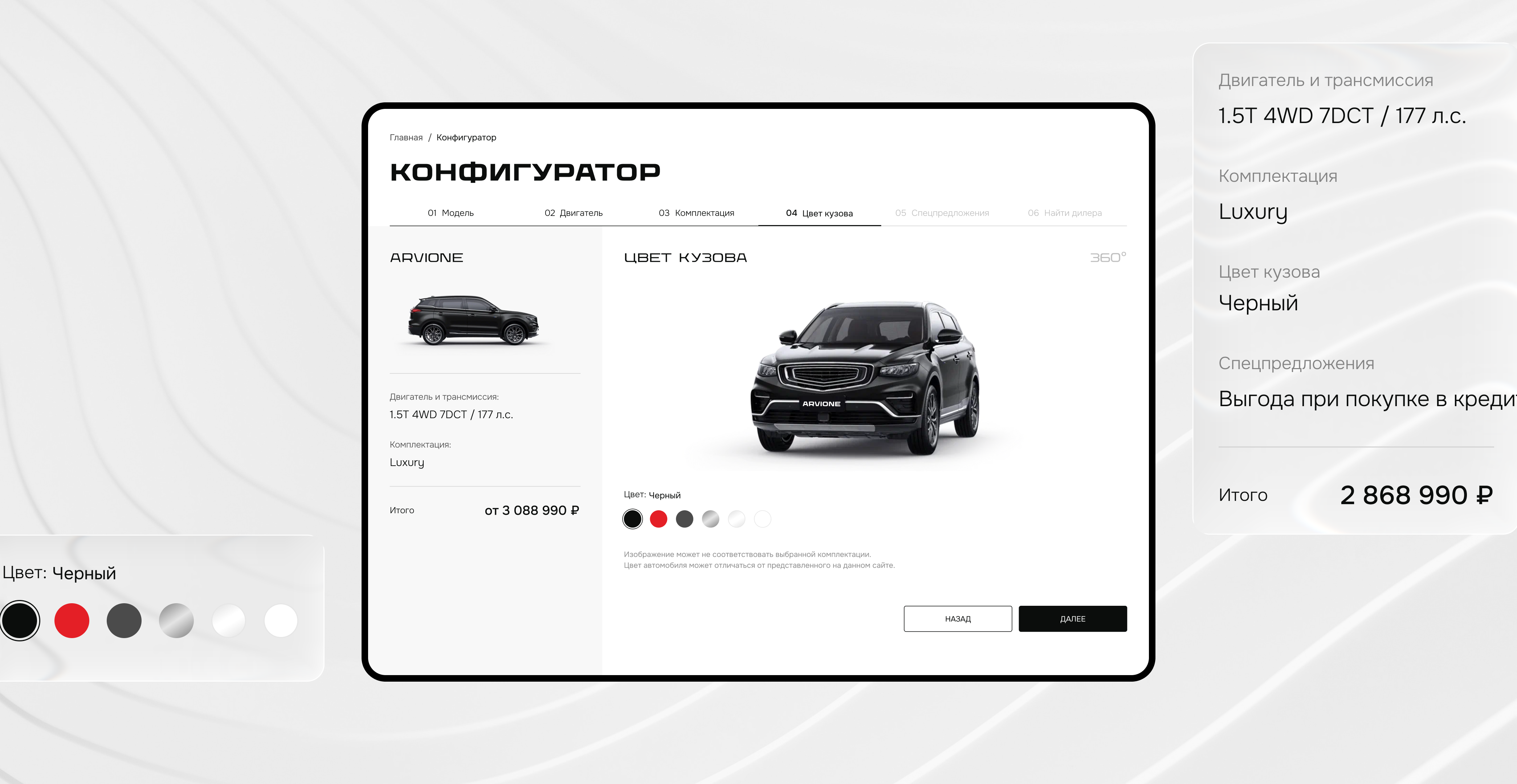 • Обновили и улучшили 3D-конфигуратор с выбором комплектаций и просмотром авто на 360°;