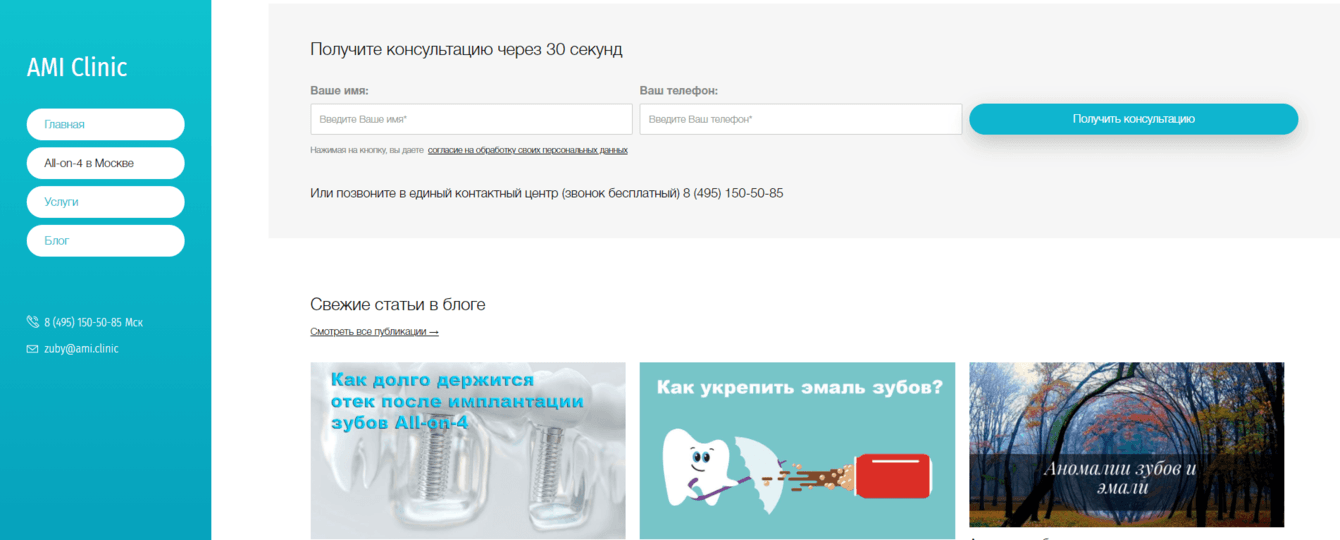 Исходный сайт заказчика под брендом AMIClinic https://ami.clinic