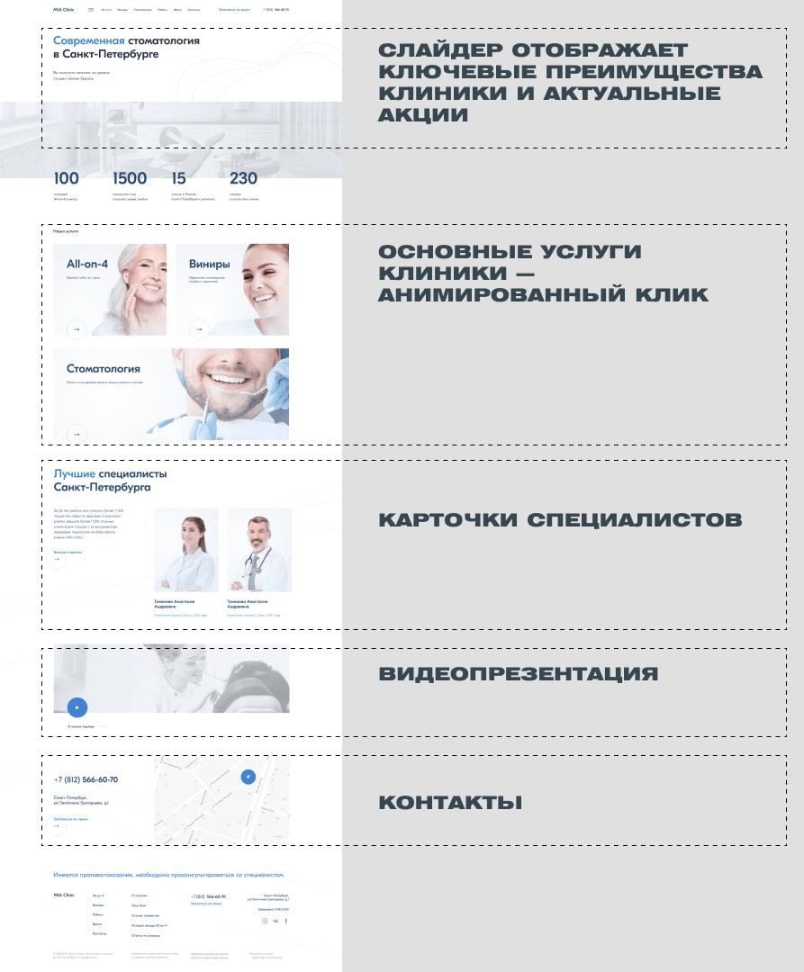 MIAClinic— новый бренд стоматологии в центре Санкт-Петербурга. Помимо оказания стандартных услуг, клиника специализируется на протезировании по современной технологии All-on-4 при полном или почти полном отсутствии зубов. Клиенту устанавливают четыре импланта, на которые закрепляют протез. Вся процедура занимает порядка 13 часов и имеет пожизненную гарантию. Многолетний опыт в оказании подобных услуг клиника получила под другим брендом AMIClinic — сеть стоматологий в Москве и Петербурге. В 2020 году в связи с разногласиями соучредителей MIAClinicвыделилась в самостоятельный бренд. В этот момент заказчик обратился к нам за разработкой нового сайта.