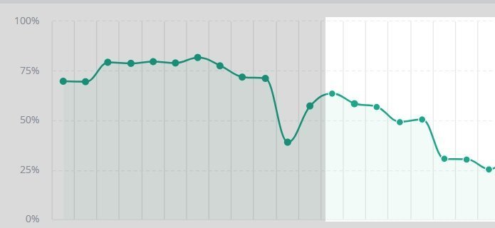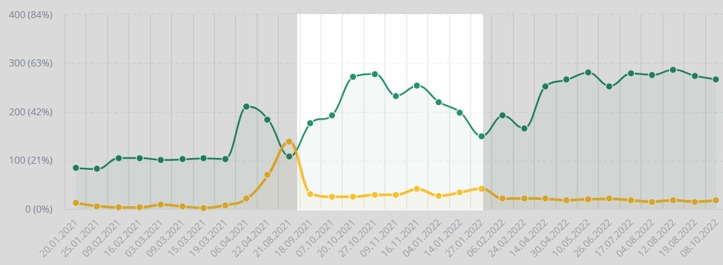 Результат, опять же, был нестабильным: рост позиций закончился их возвратом на исходные позиции, а реальная видимость сайта ещё снизилась: