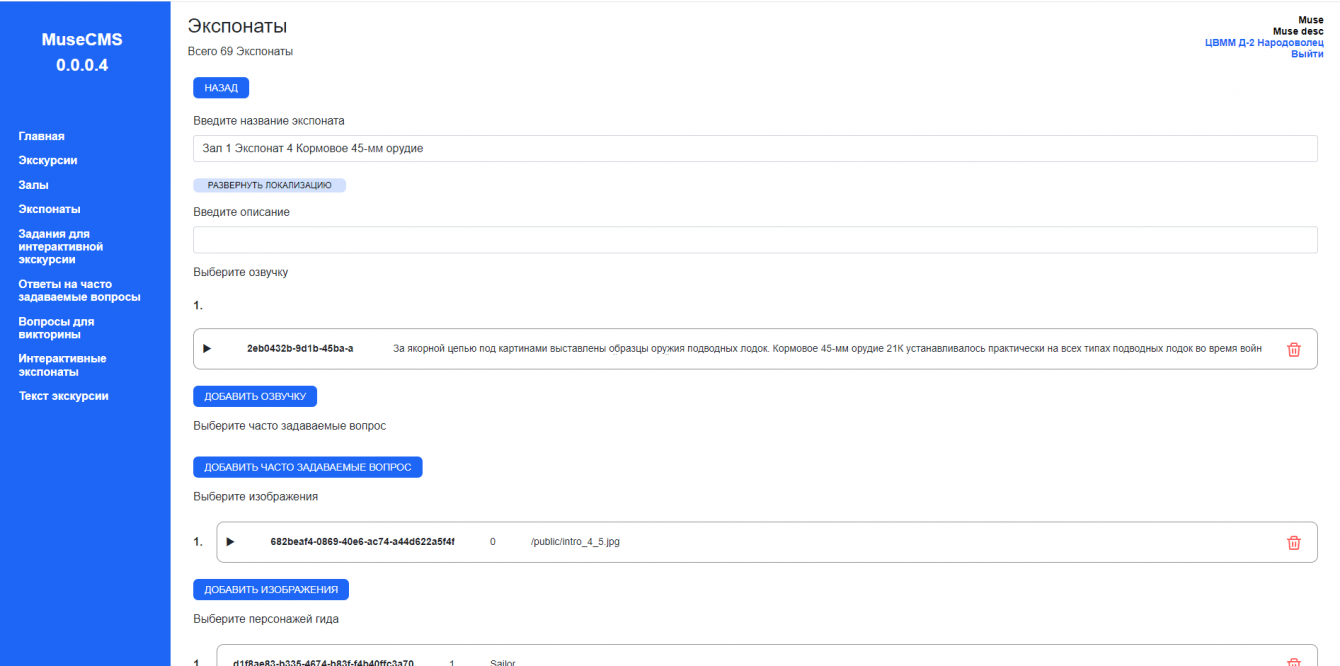 Была проведена подробная аналитика функционала приложения аудио-видео гида и принято решение использовать продукт собственной разработки "Конструктор CMS". Данный продукт отличается универсальностью и простотой. Позволяет создавать и управлять сущностями БД, служит переходником, между клиентом и базой данных.