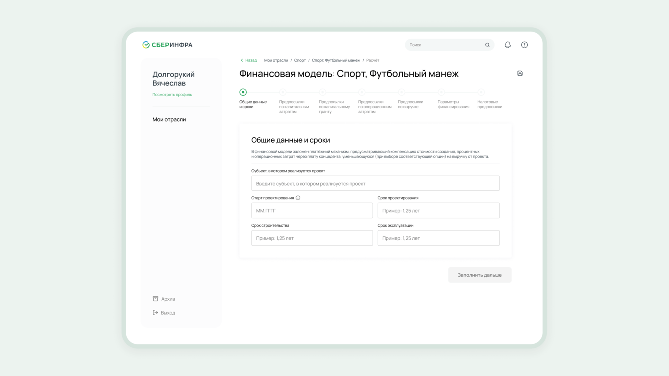• предоставить возможность клиентам СберИнфра самостоятельно готовить финансовые модели для банка (вносить данные, получать результаты в веб-интерфейсе и файлах для скачивания);