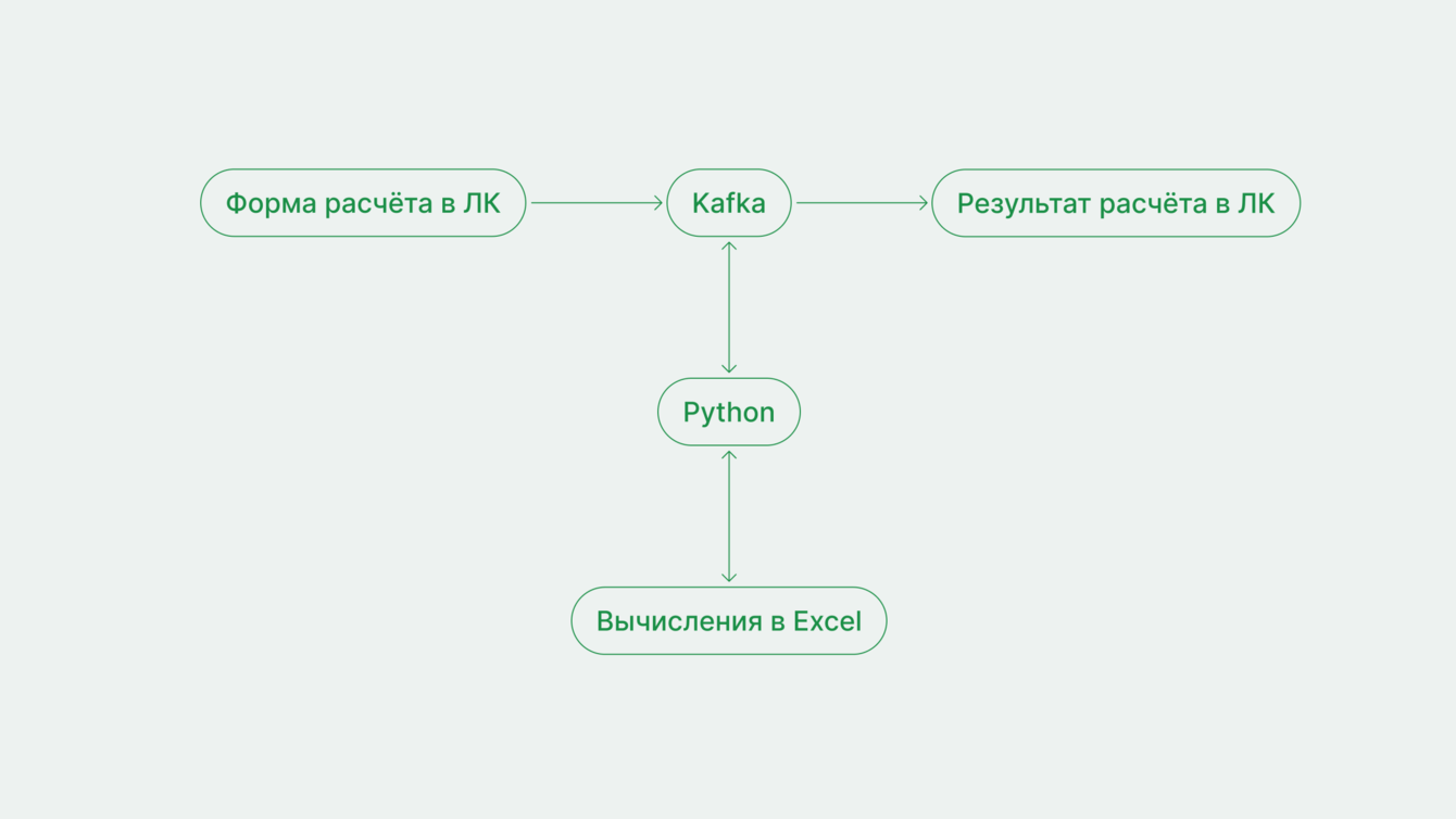Привычной средой расчета моделей для заказчика является Excel, аналитики самостоятельно разрабатывают макросы и вносят изменения в алгоритмы. Поэтому сервисом расчета моделей фактически является Excel, а для запуска вычислений используется приложение на Python, которое получает данные из личного кабинета и использует их при запуске макросов в Excel.