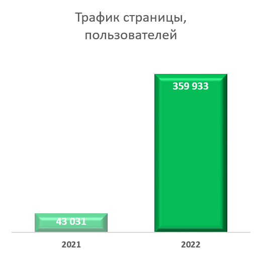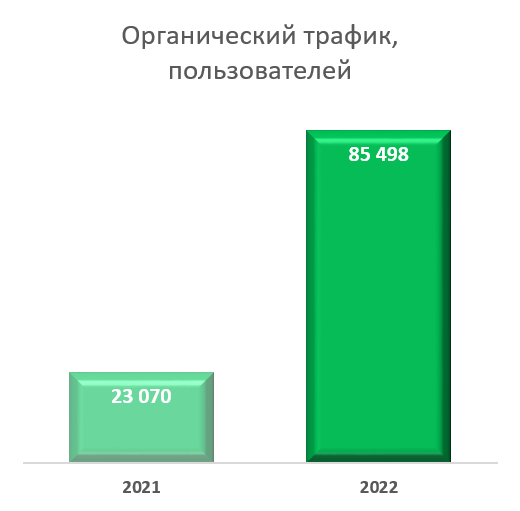 Как видно на графиках ниже: рост трафика (2021 - 2022гг) составил 800%; из общего объема трафика органический трафик вырос на 300%.