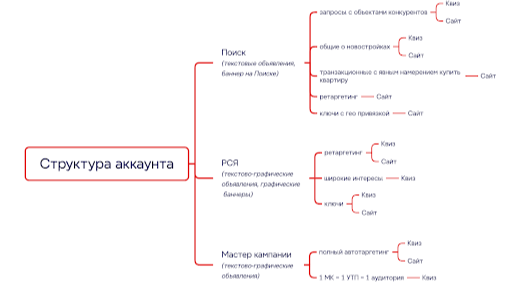 Когда рекламный аккаунт настолько большой, нужно тщательно продумать его структуру и нейминг ещё до запуска активностей. Иначе управлять им будет сложно. Это важный этап подготовки на старте, чтобы потом ничего не отвлекало от достижения целей.
