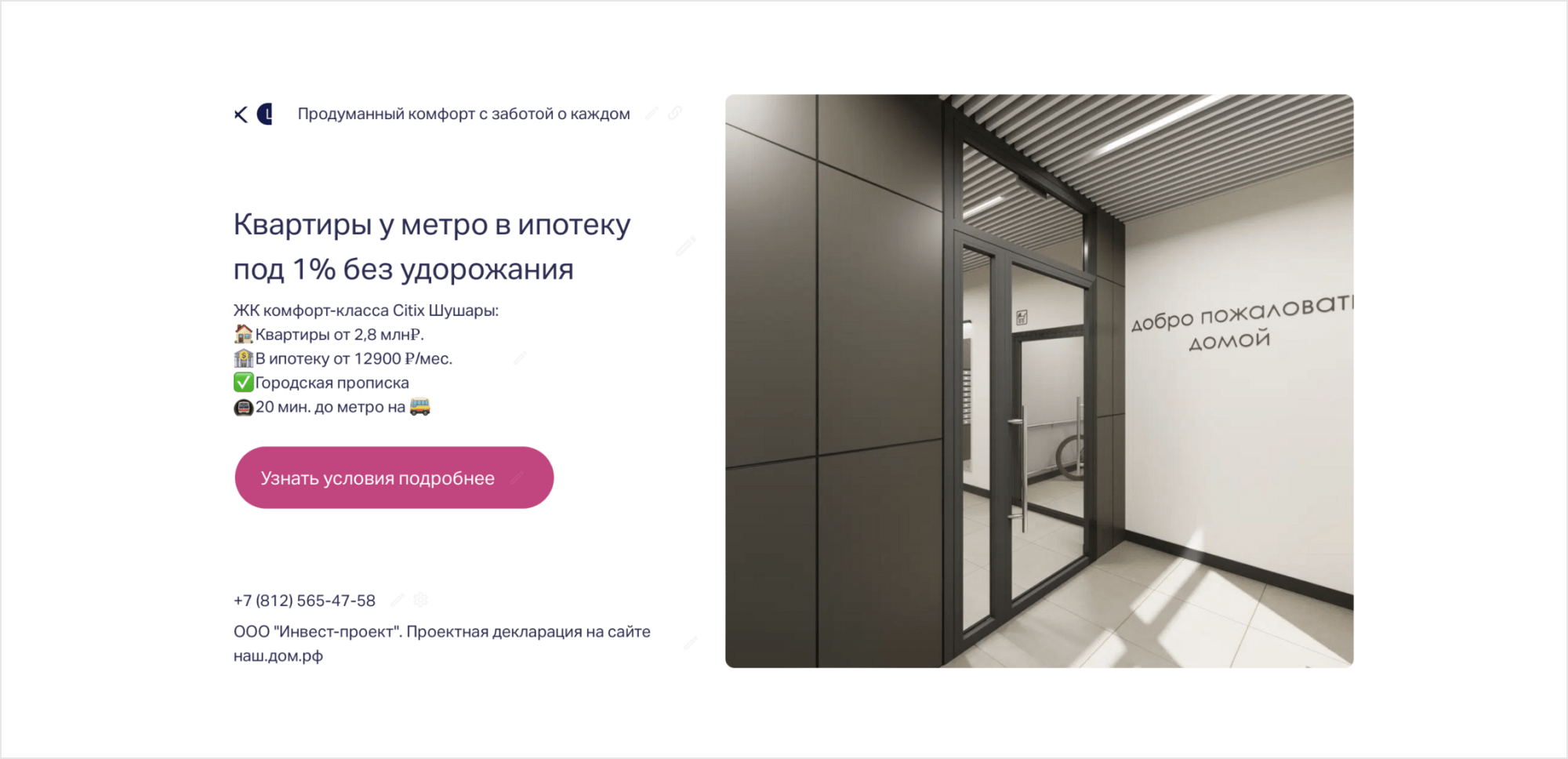 На рынке недвижимости высокая конкуренция, а еще у жилых комплексов очень похожие УТП. Мы понимали, что нам нужно будет как-то отстроиться других ЖК, чтобы выделиться среди одинаковых баннеров, при этом собрав лиды в короткий промежуток времени.