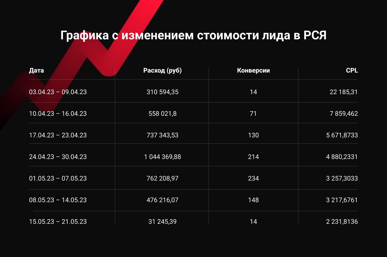 Конверсионные стратегии наиболее эффективны, так как «внутри» алгоритмов автостратегий обрабатывается до 200 сигналов. На ручном управлении таких рычагов влияния на рекламную кампанию куда меньше. Но подобным стратегиям нужно время для обучения. Чтобы как можно быстрее получить первые показы, сначала запустили «Мастера кампаний» с оплатой за заявки и РСЯ с оплатой за клики. Параллельно дорабатывали семантику для ТГО-кампаний на Поиске. Им нужно около четырех дней, чтобы разогнаться.