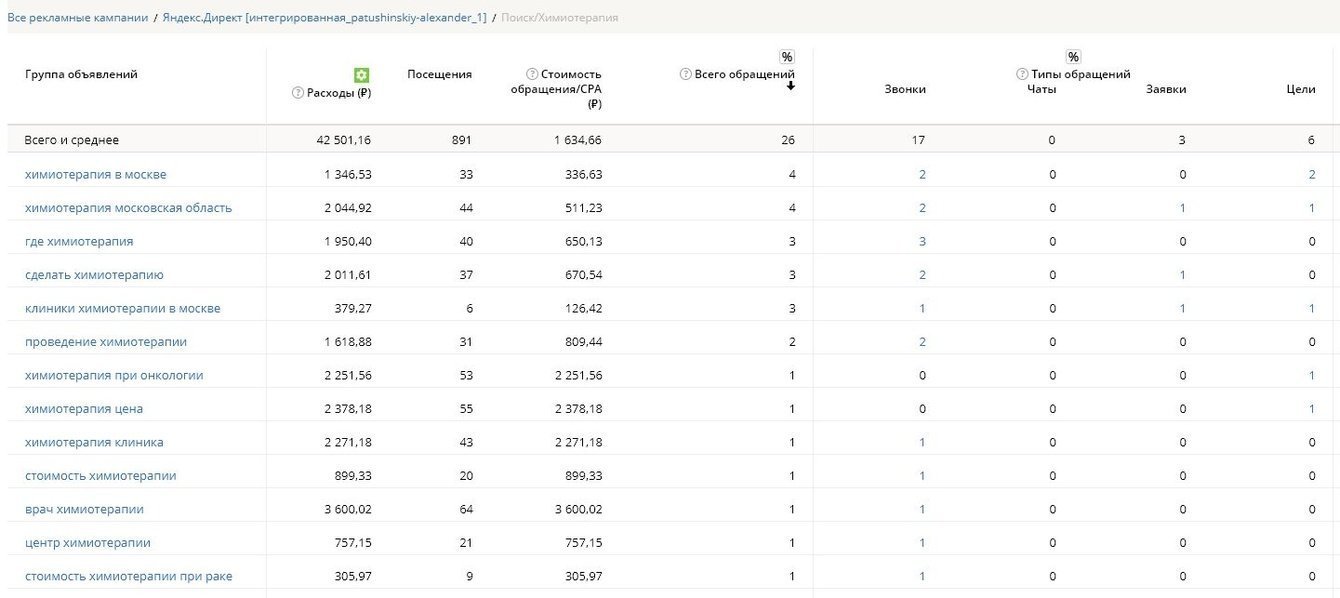 Задача: Привлечь пациентов на услугу «химиотерапия».