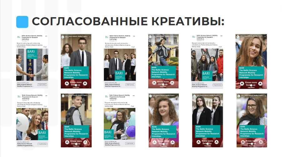 Размещение таргетированных рекламных объявлений о международном проекте #X001 «БНС_пауэрхаус Интеррег: Регион Балтийского моря» в виде фотоконтента.