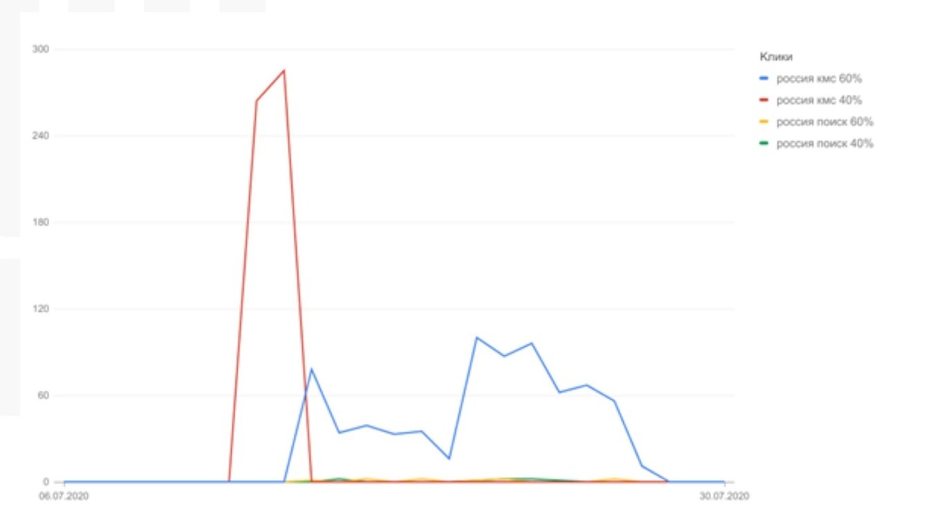 Геотаргетинг: Россия (СПб, Краснодарский край, Сибирские регионы, Москва – основной акцент (40% трафика), остальные регионы равномерный охват