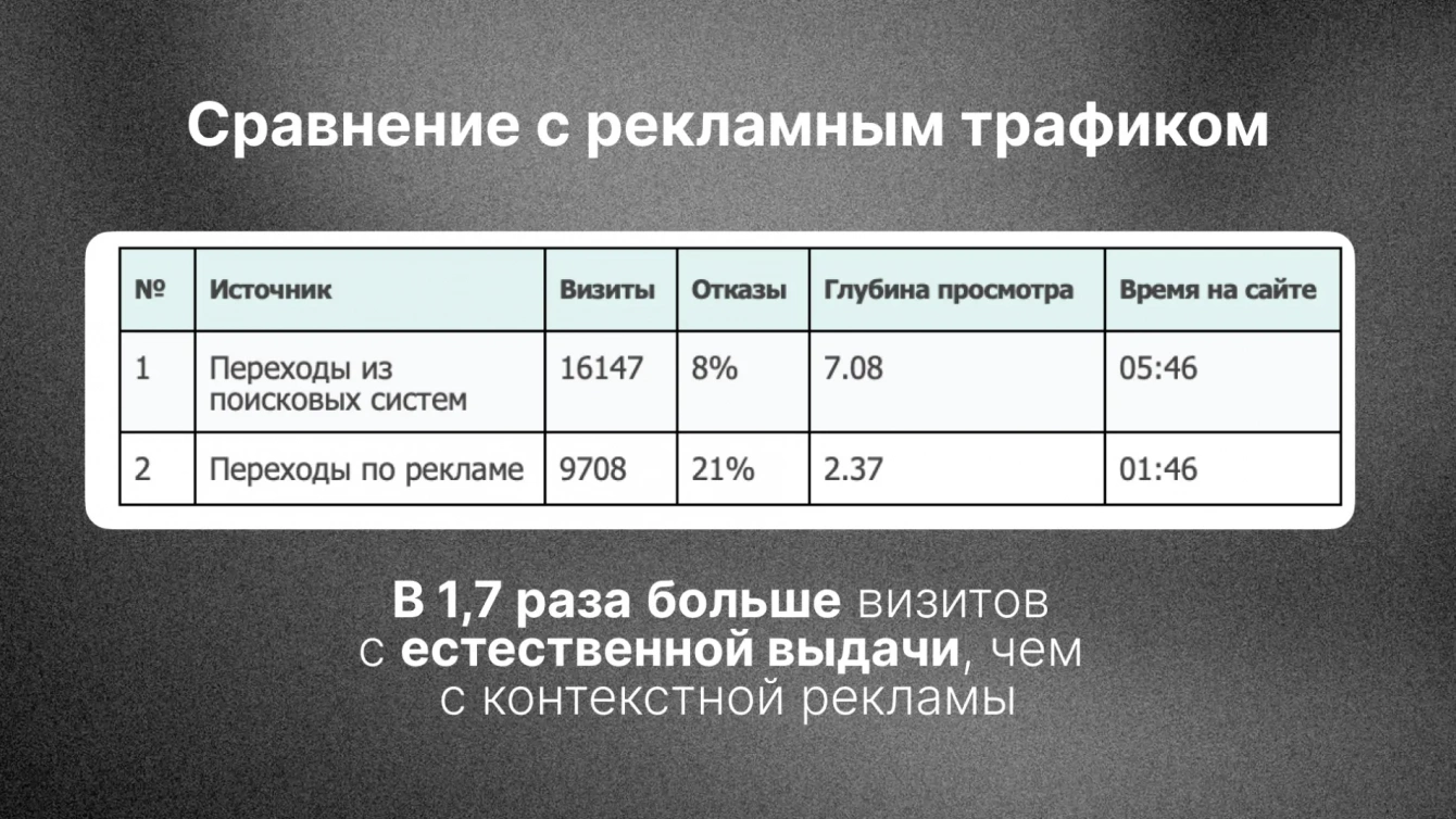 ❗В 2,5 раза больше визитов с естественной выдачи, чем с контекстной рекламы
