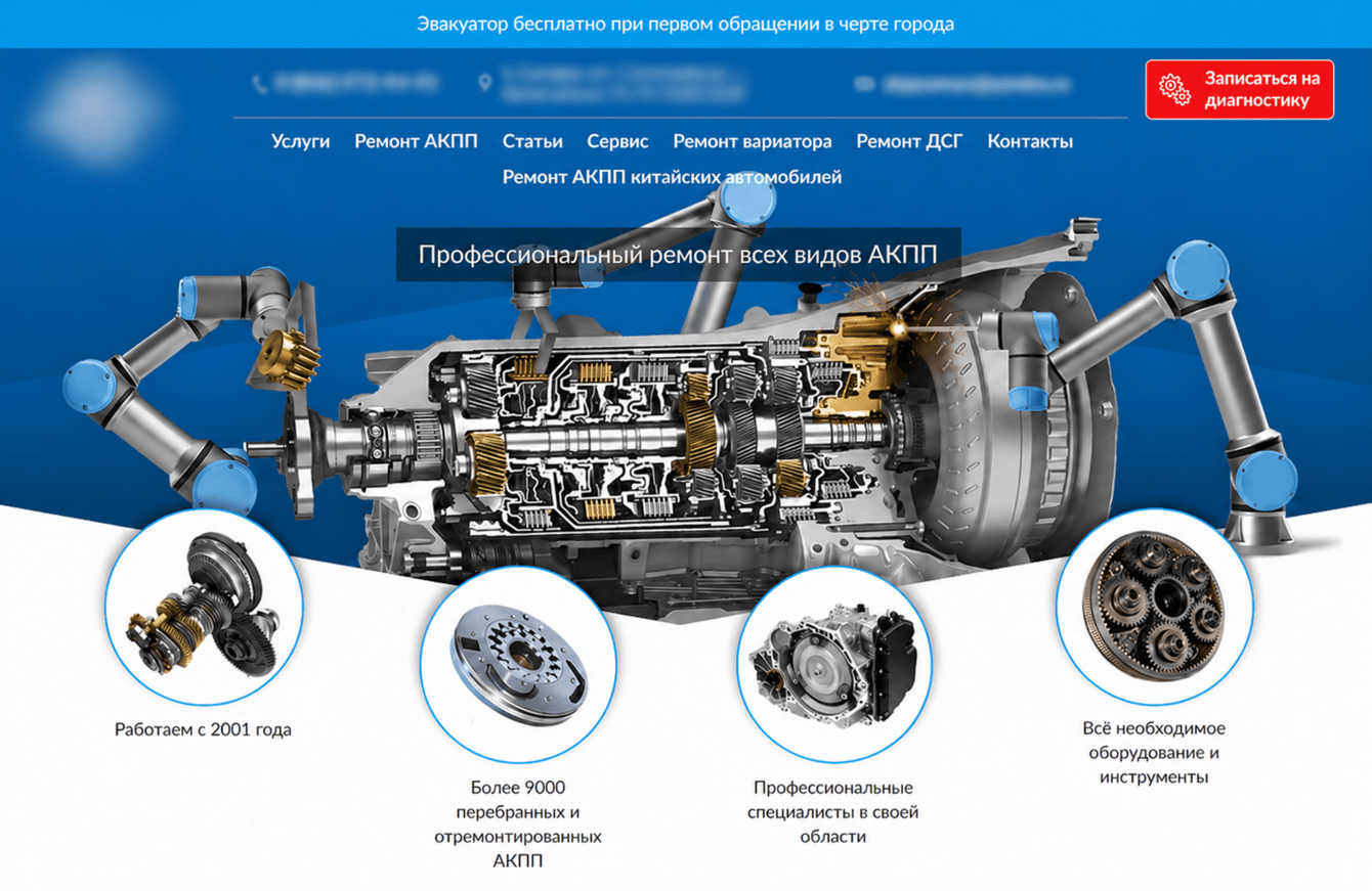 ● Клиент: Профильный автосервис по ремонту и обслуживанию вариаторов, автоматических (АКПП) и роботизированных коробок передач.