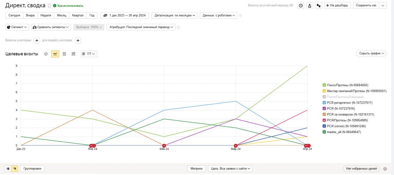 • Отсутствие истории: нет информации о стоимости заявки, конверсии сайта, конверсии в реализованные заказы и т.д.