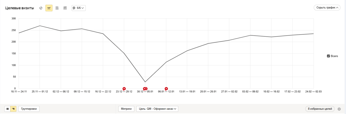 Важно отметить, что всё это было достигнуто в условиях новогоднего периода — когда часть команды клиента находилась в отпуске, склады были закрыты на инвентаризацию, а рекламные кабинеты пришлось перестраивать практически «на ходу».