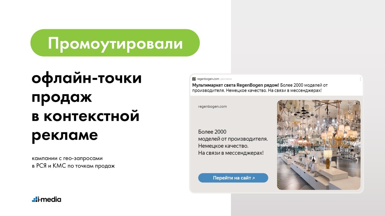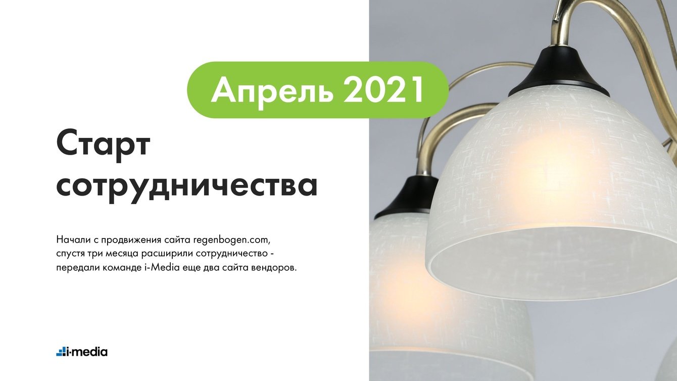 В апреле 2021 вместе с брендом начали с продвижения сайта regenbogen.com. Спустя три месяца команде i-Media доверили еще два сайта вендоров.