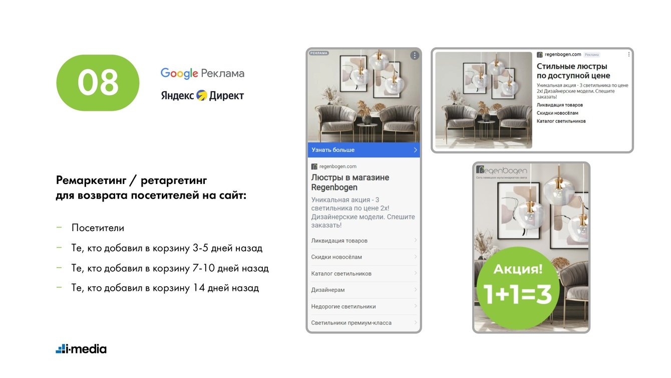 Для возврата посетителей на сайт включили ремаркетинг и ретаргетинг. После ухода Google из России запустили в Мастер Кампаний в Яндексе.