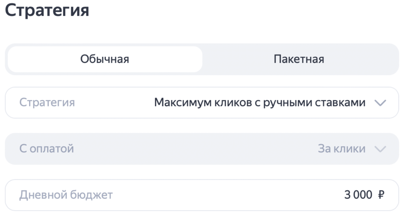 Для всех кампаний была выбрана ручная стратегия управления, так как в данной нише мы видим возможность эффективной рекламы только при тонкой точечной ручной настройке. Зачастую алгоритмы Яндекса при автоматических стратегиях подсовываю много нецелевого трафика.