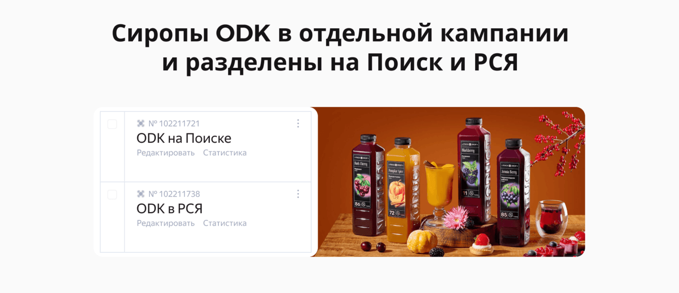 — Создали отдельные кампании под конкретные бренды и категории продуктов.