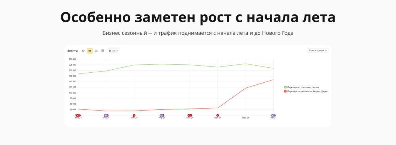 — Стабильный рост дохода, особенно в сезонный период (лето—зима).