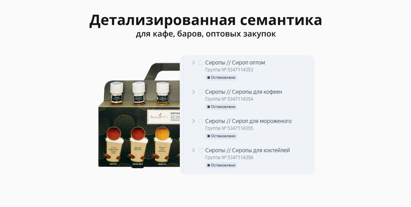 — Собрали детализированную семантику, ориентированную на B2B-запросы: для кафе, баров, оптовых закупок.