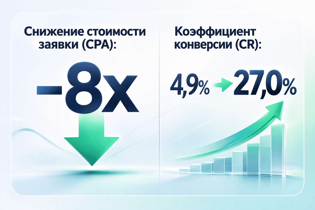 🏆Снижение стоимости заявки (CPA): в 8 раз