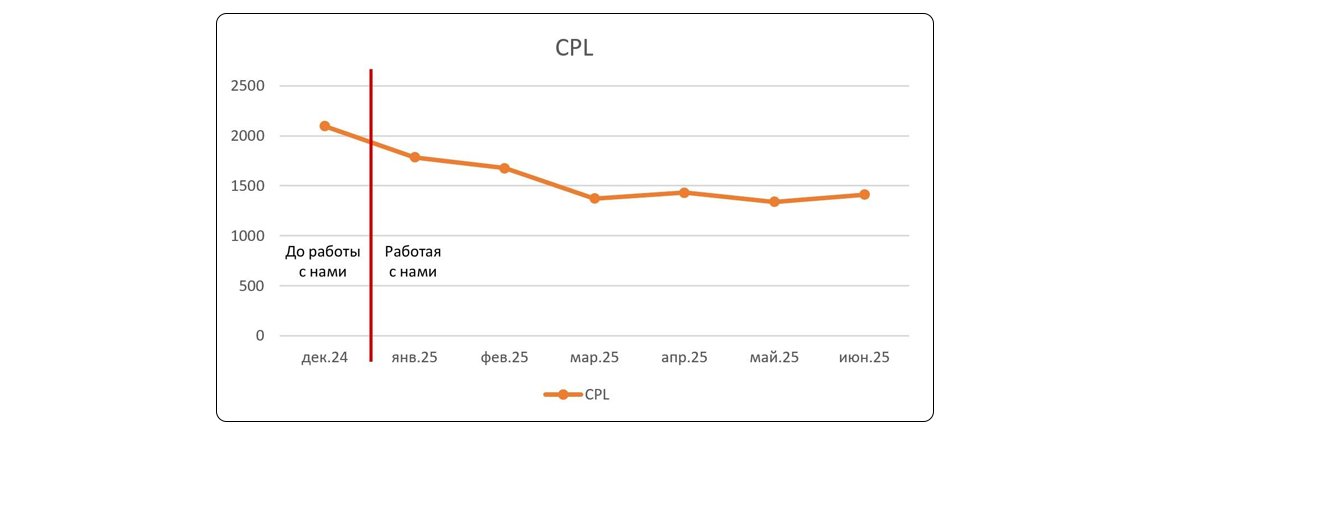 Также мы не просто удерживали CPL ниже 1 500 ₽, но и снизили изначальный на 32%, так как для клиента было важно сохранить стоимость заявки в этом диапазоне.