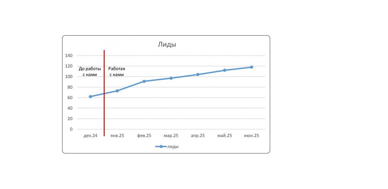 За полгода работы общее количество лидов из digital у клиента увеличилось на 90% по сравнению с цифрами, которые давал прошлый подрядчик. Это закрыло ключевую задачу по увеличению количества качественных заявок.